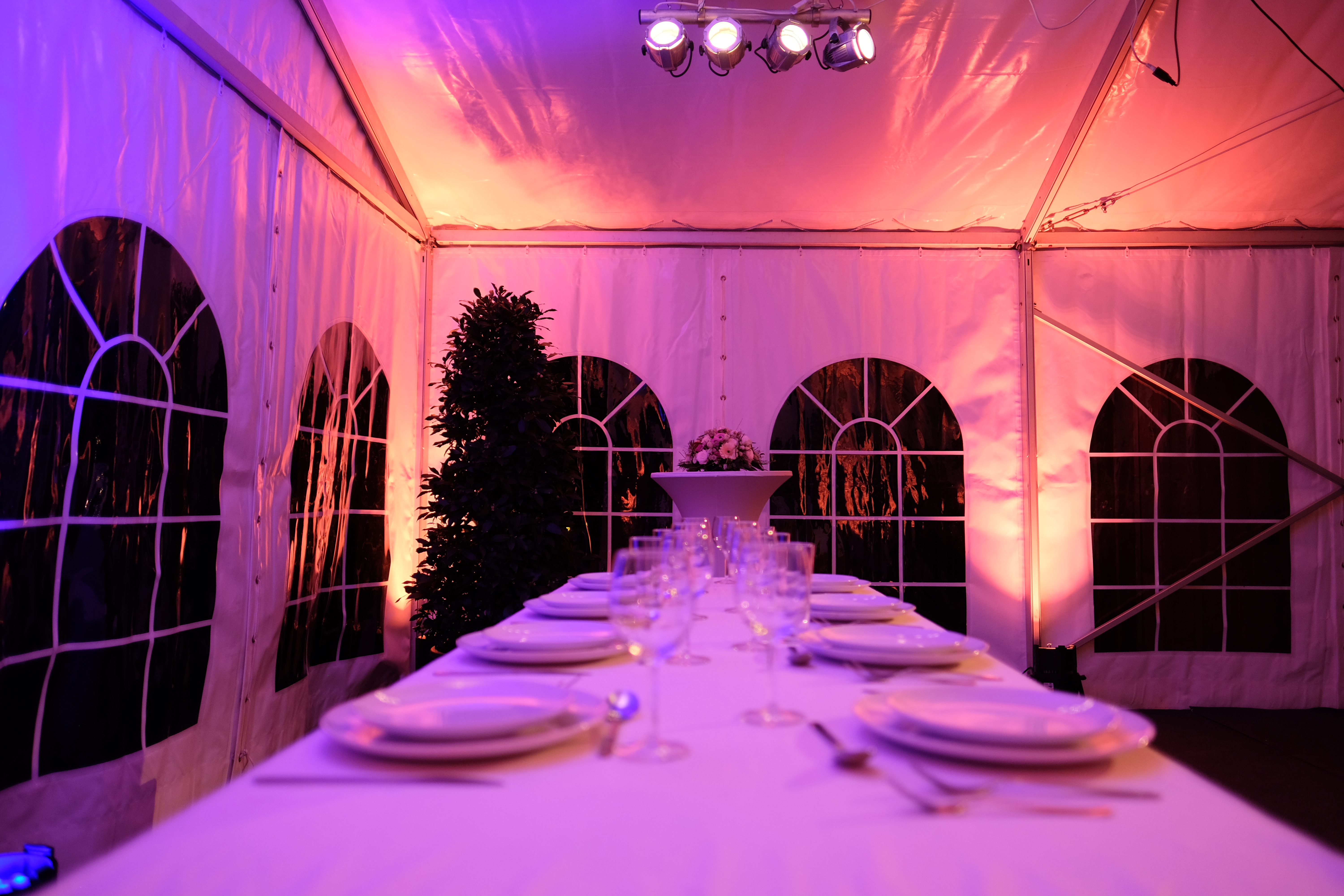 Die richtige Beleuchtung und Beschallung zaubert in jedes Zelt eine wunderbare, wohlige Atmosphäre. Egal ob Sie nur eine Grundbeleuchtung und eine kleine Tonanlage brauchen oder aber das Zelt komplett in ein anderes Licht rücken möchten. Wir und unsere Partner liefern Ihnen alles, was dazu benötigt wird.
