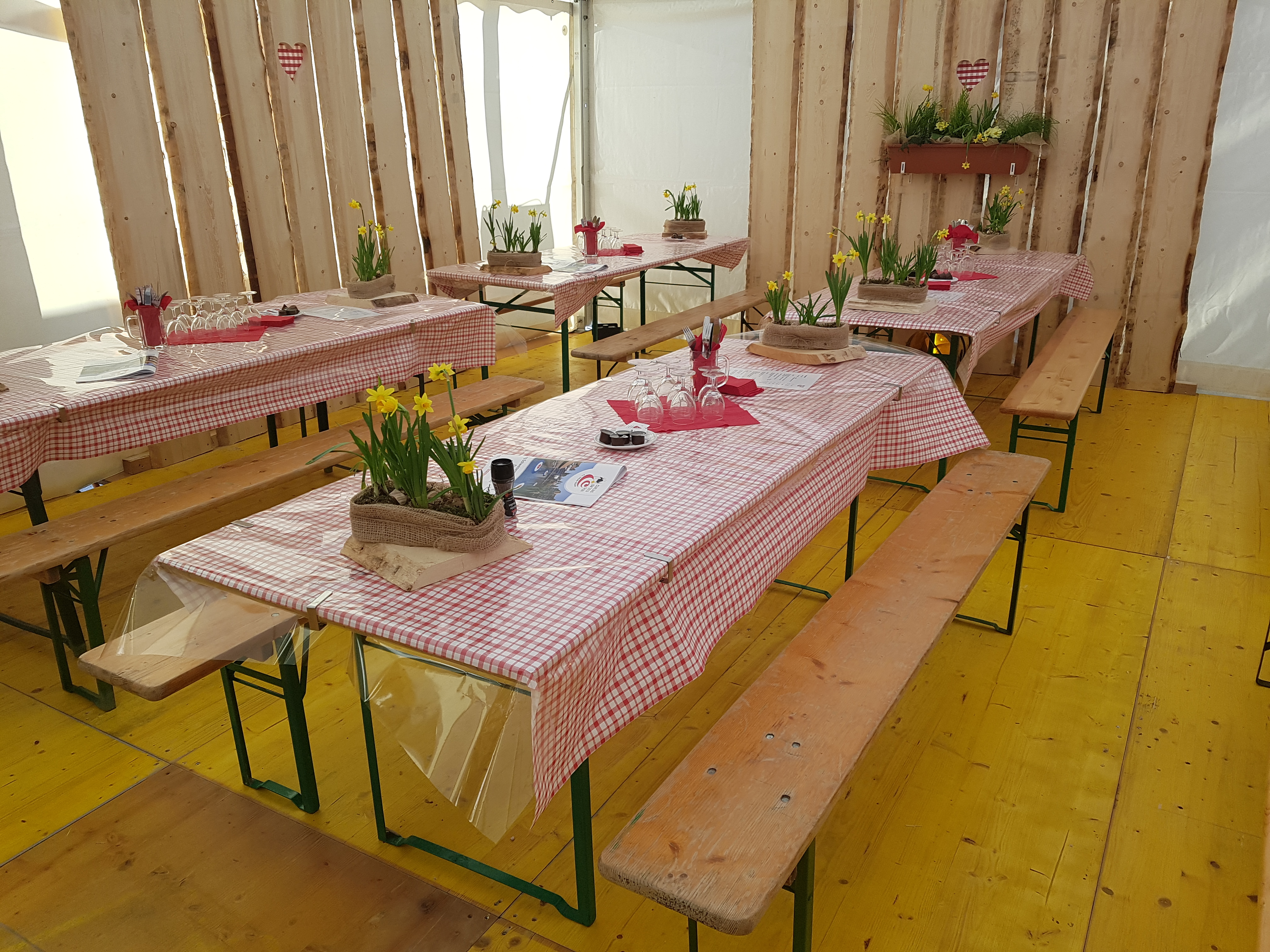 | Dekorationsmaterial: | Servietten, Tischläufer und Tischdeko |